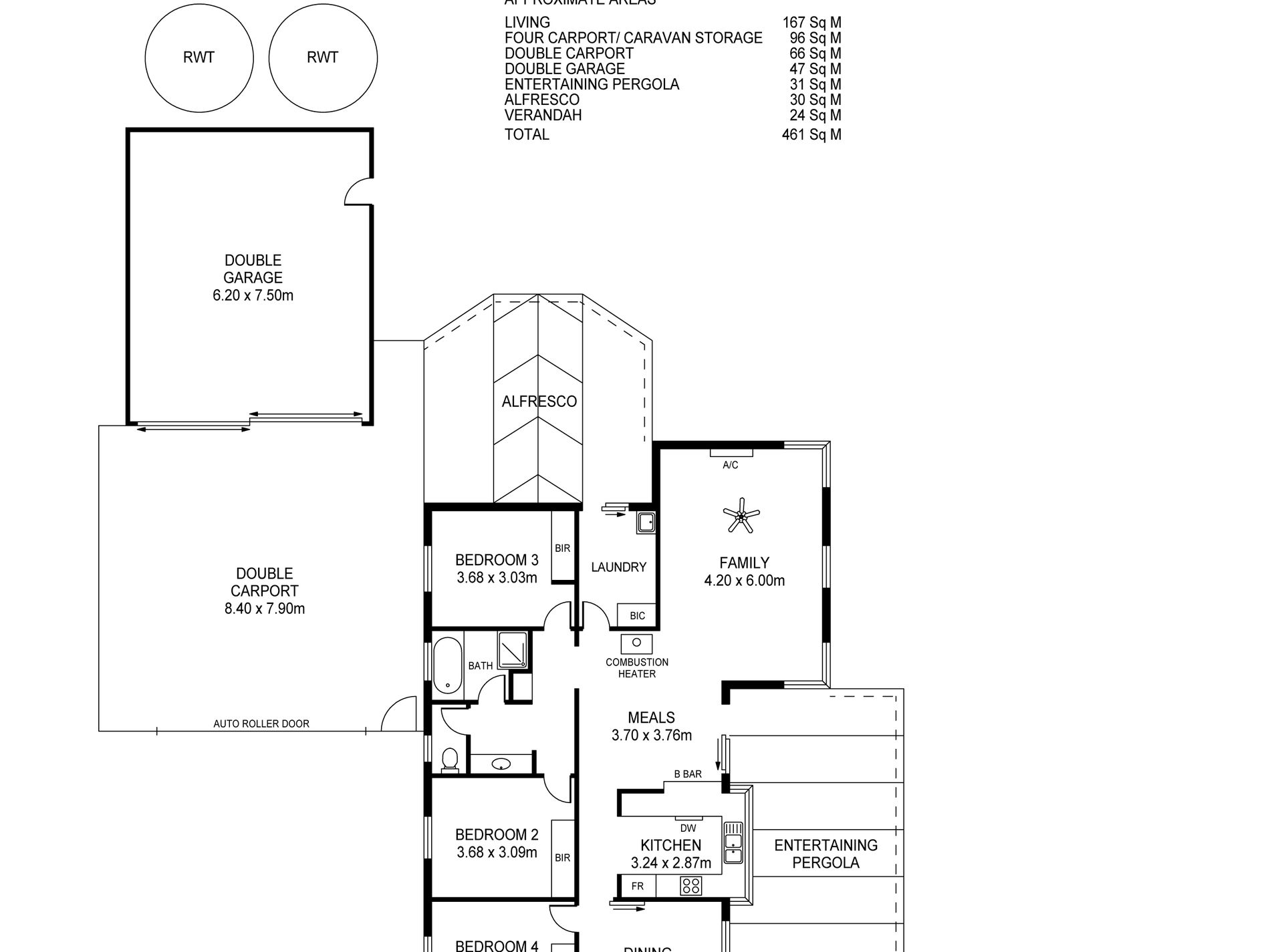 Four bedrooms, main with ceiling fan, walk-in robe, and ensuite. Bedrooms two, three and four all with built-in robes. Serviced by a three way bathroom with separate shower, bath, and w/c. large laundry with direct access to back yard.